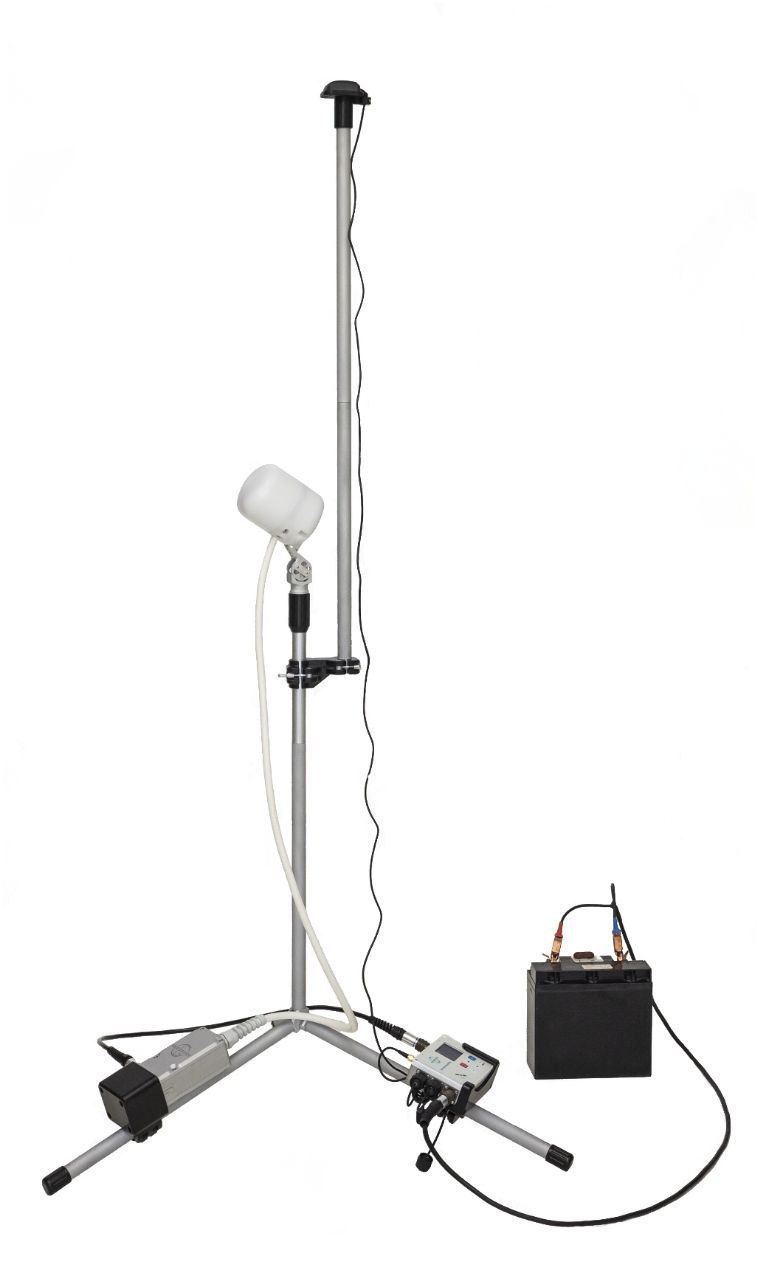 SmartMag – the World's most advanced and portable magnetometer based on the Overhauser effect. The complete ready to use set with all necessary accessories and battery fits in a carry-on size case and weighs only 7.5 kg. SmartMag can be used as an observatory magnetometer, base station, as part of a multi-sensor gradiometer, or even as a GNSS base and rover with centimeter accuracy in PPK mode. It is fully compatible with MaxiMag console and can be applied for any type of ground magnetic surveys.