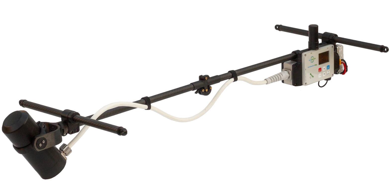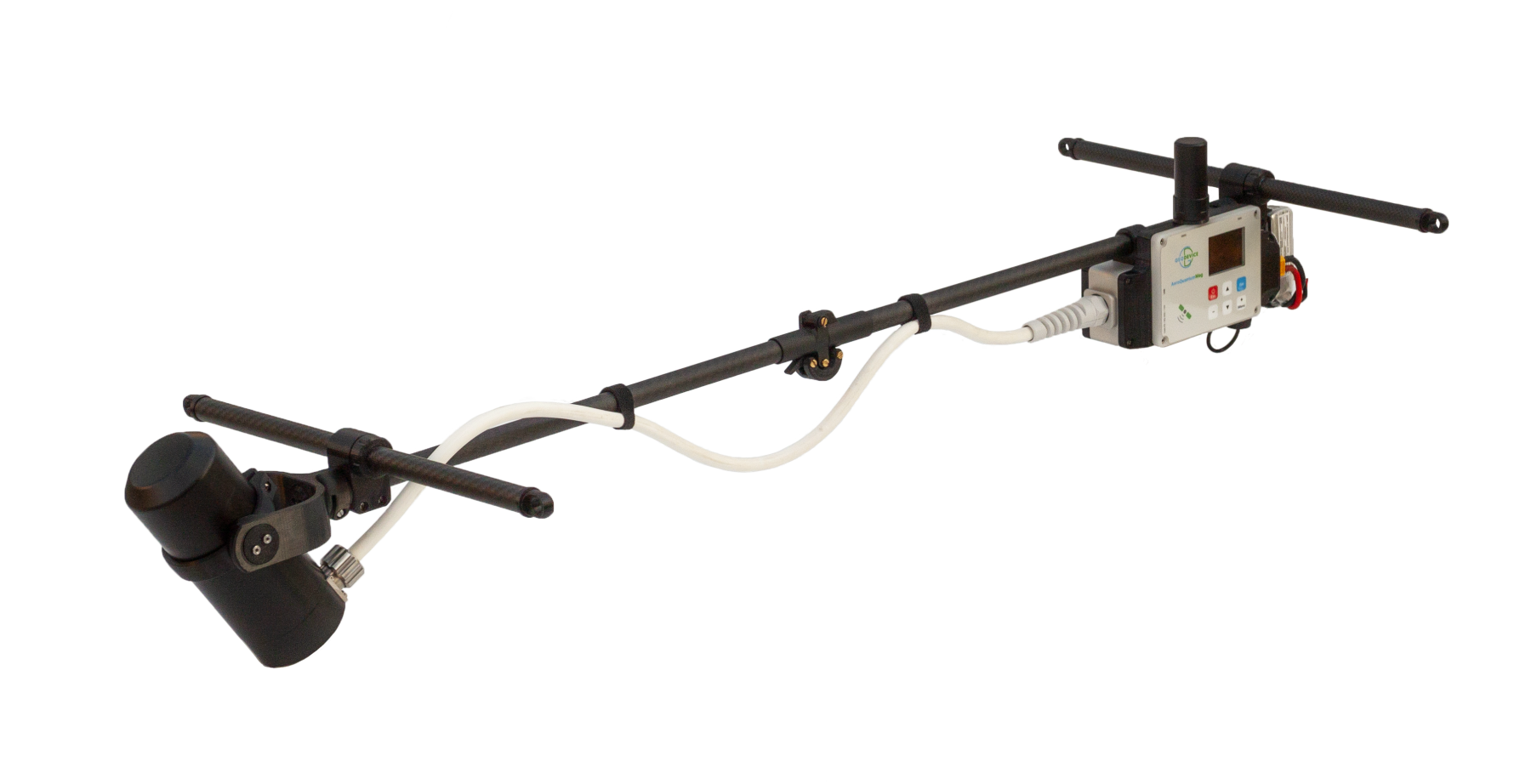 AeroQuantumMag est conçu pour effectuer de manière efficace des levés magnétiques à l'aide d'un drone. Le dispositif se caractérise par une vitesse de mesure élevée (jusqu'à 100 Hz) et une sensibilité de 0,002 nT/√Hz rms. Le corps aérodynamique avec cadre en fibre de carbone ne pèse que 1,3 kg avec la batterie. Ce faible poids augmente le temps de vol du drone. Le magnétomètre ne nécessite aucun échange de données avec le drone et utilise sa propre batterie, il peut donc être utilisé avec n'importe quel drone.